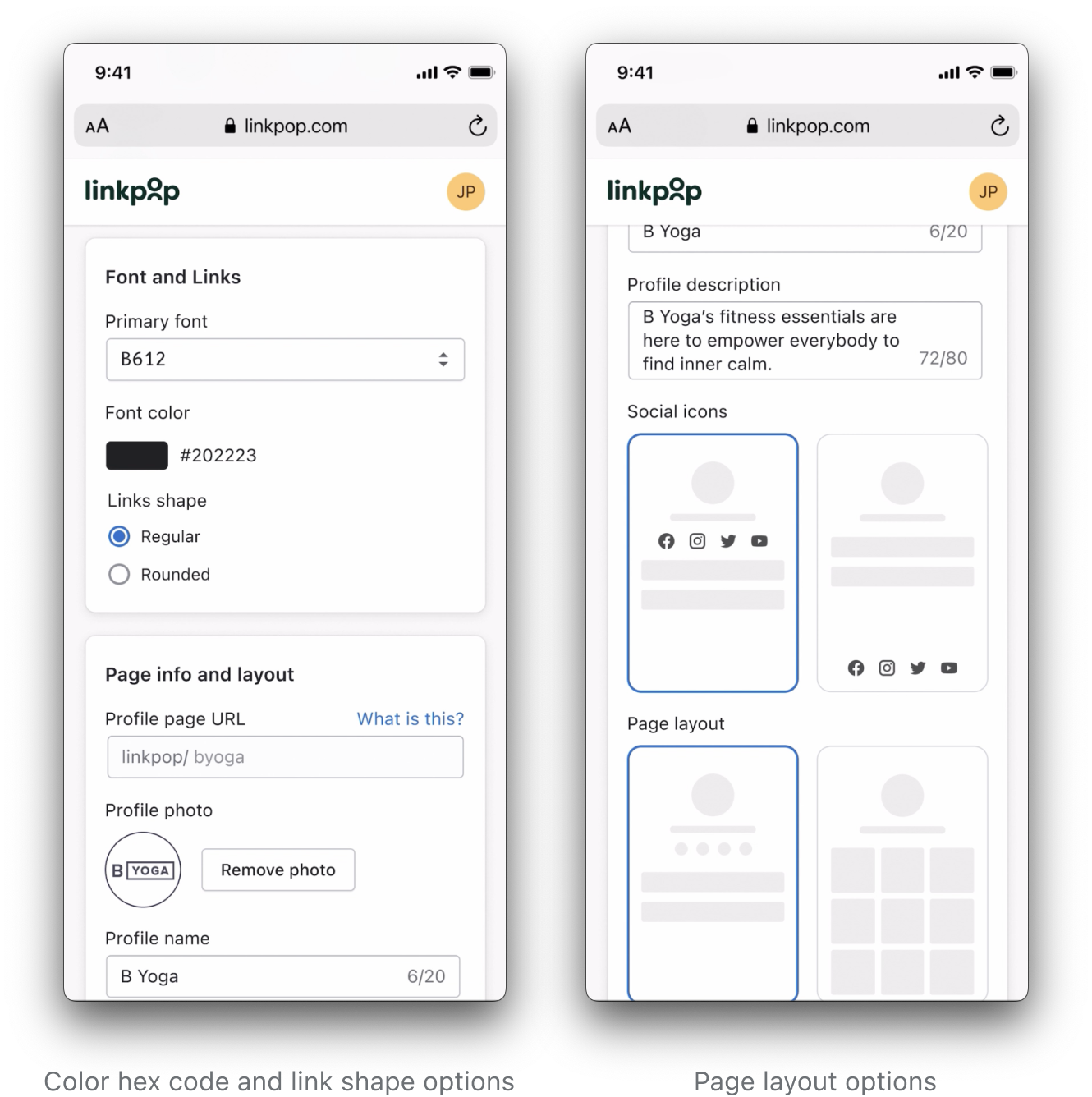 In order to build up the same experience as storefront and branding, merchants highly request for more options to customize link in bio page for providing seamless buyer experience. For example, more font, color, icon and layout option for customizing page look and feel.