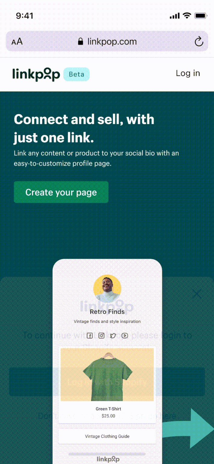 A link-in-bio tool designed for commerce that helps merchants turn audience into customers.
